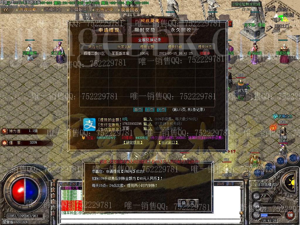 金币充值比例 1 :10   版本为正常开区端有问题联系QQ 616102345  处理