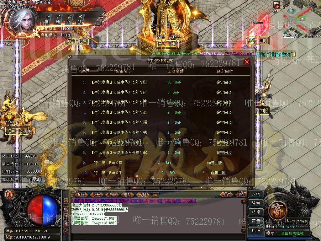 金币充值比例 1 :10 版本为正常开区端有问题联系QQ 616102345 处理
