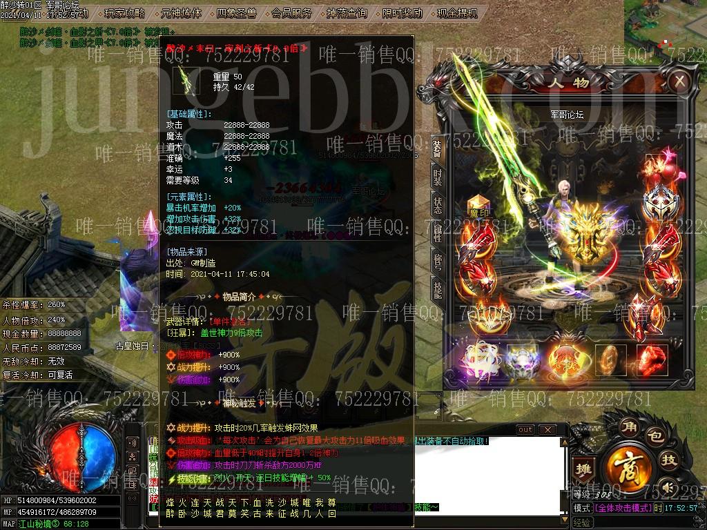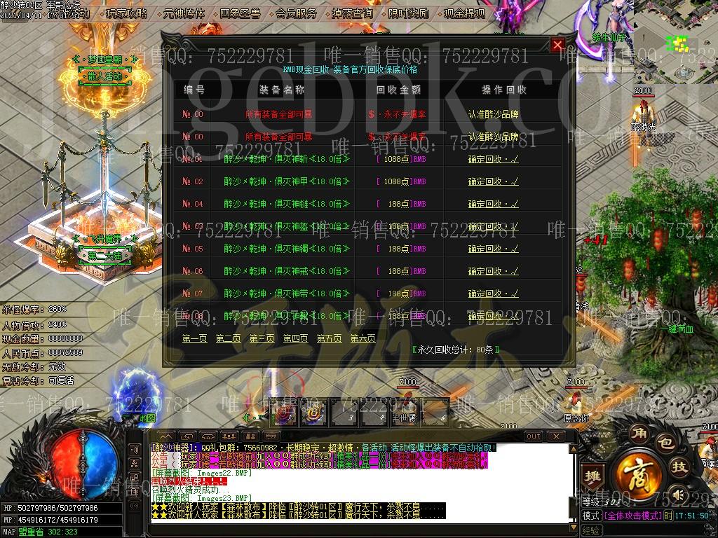 上百件装备回收游戏装备全靠打 永不关爆率低消费高回报脸好日赚F元不是梦