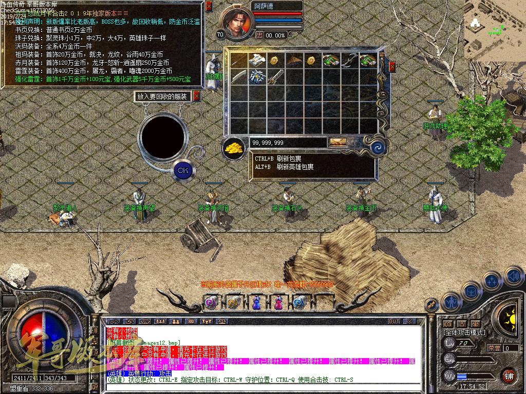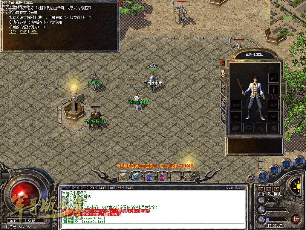 金币充值比例 1 :10   版本为正常开区端有问题联系QQ 616102345  处理