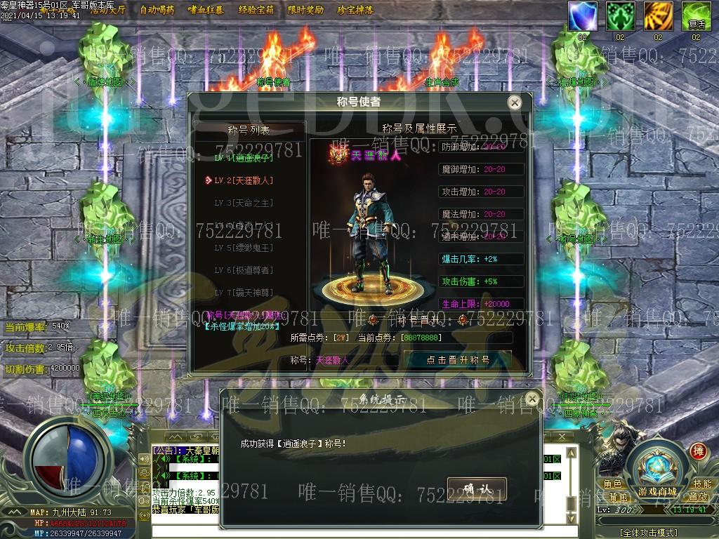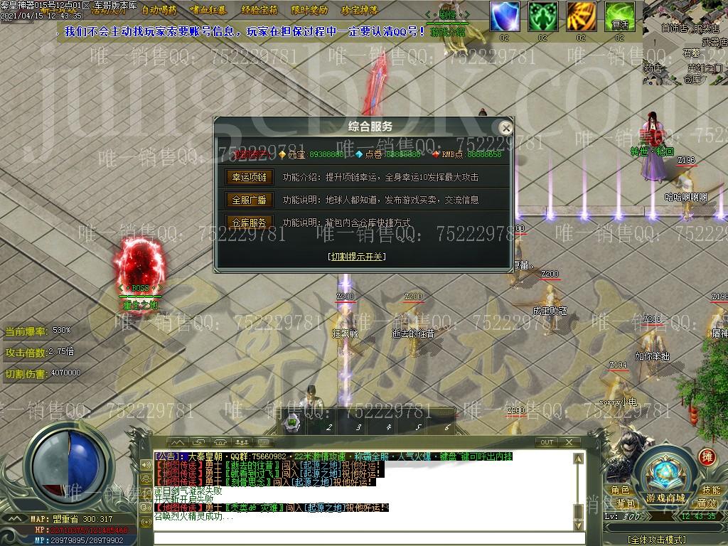 本服特色一:散人上线免费领取QQ礼包、送冰冻卷,随意击杀各种BOSS,真正的一款无需充值即可的版本,骨灰玩家首选!