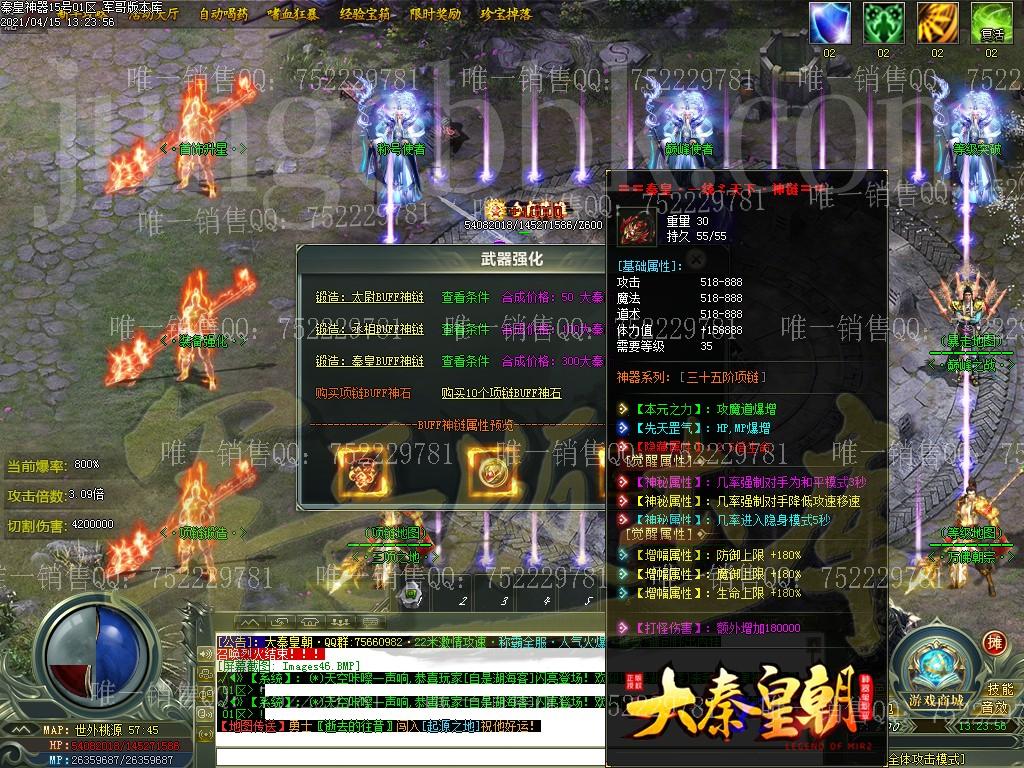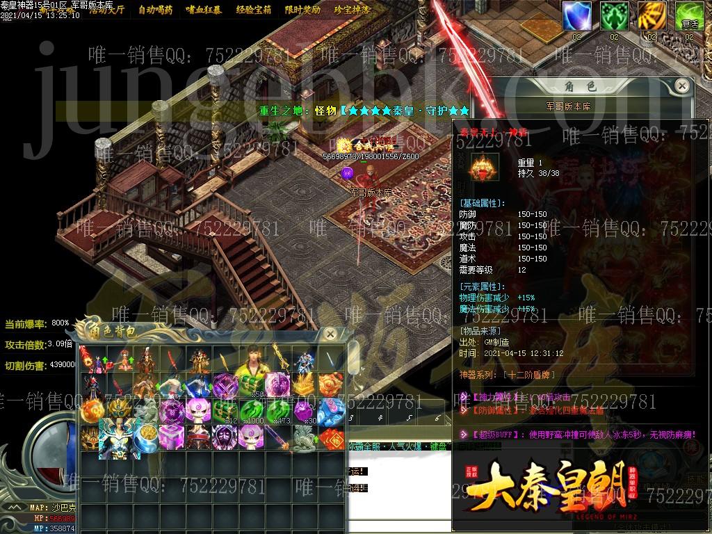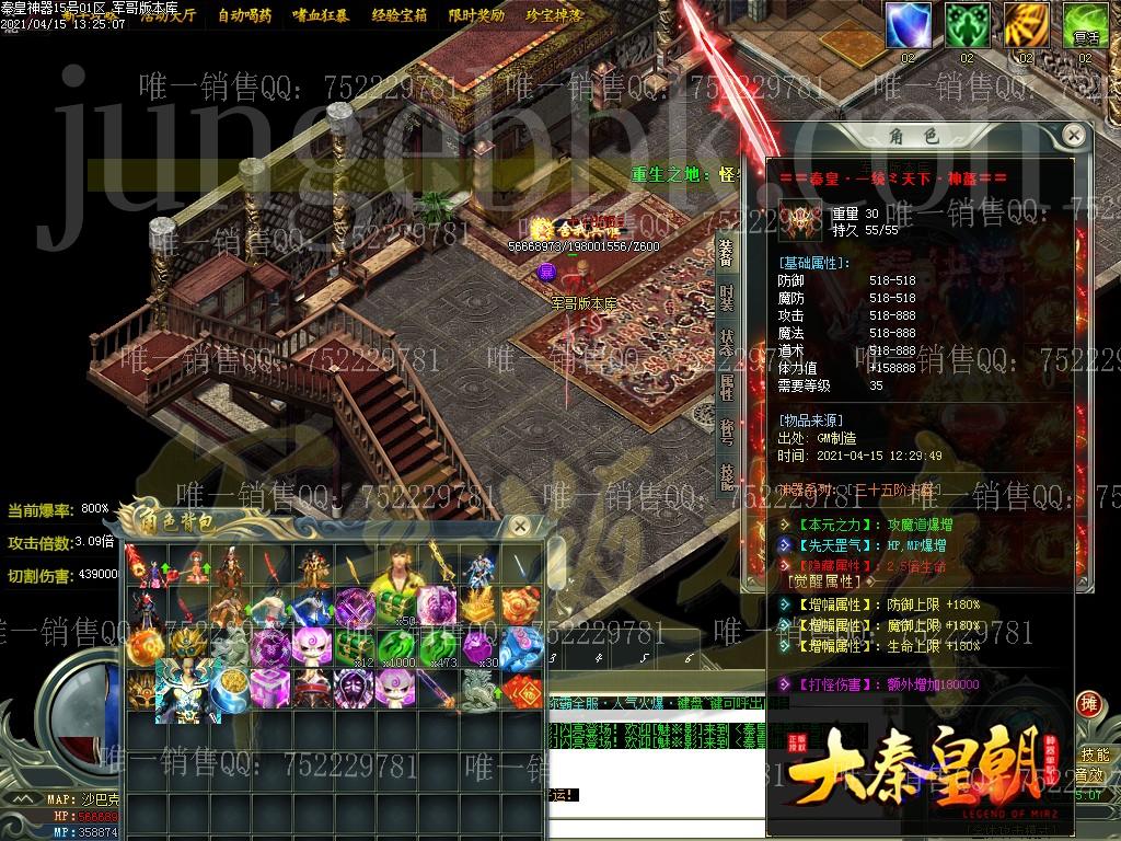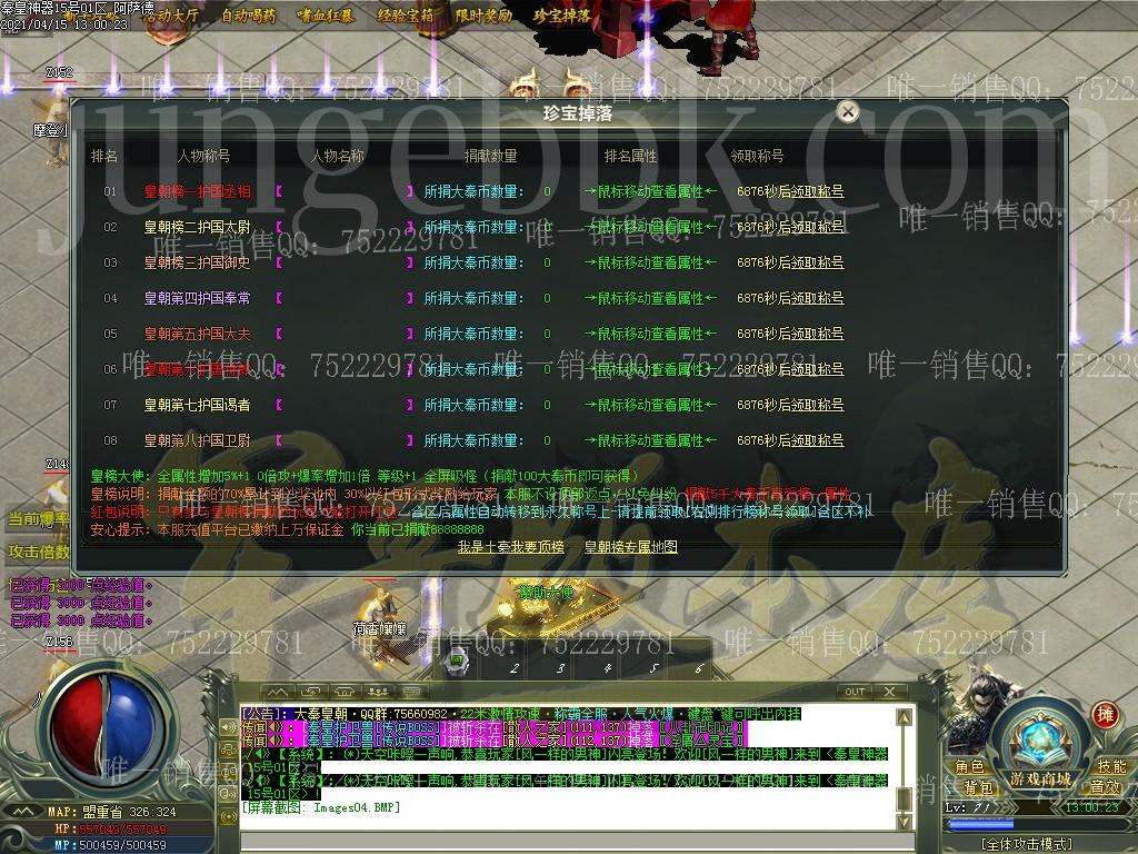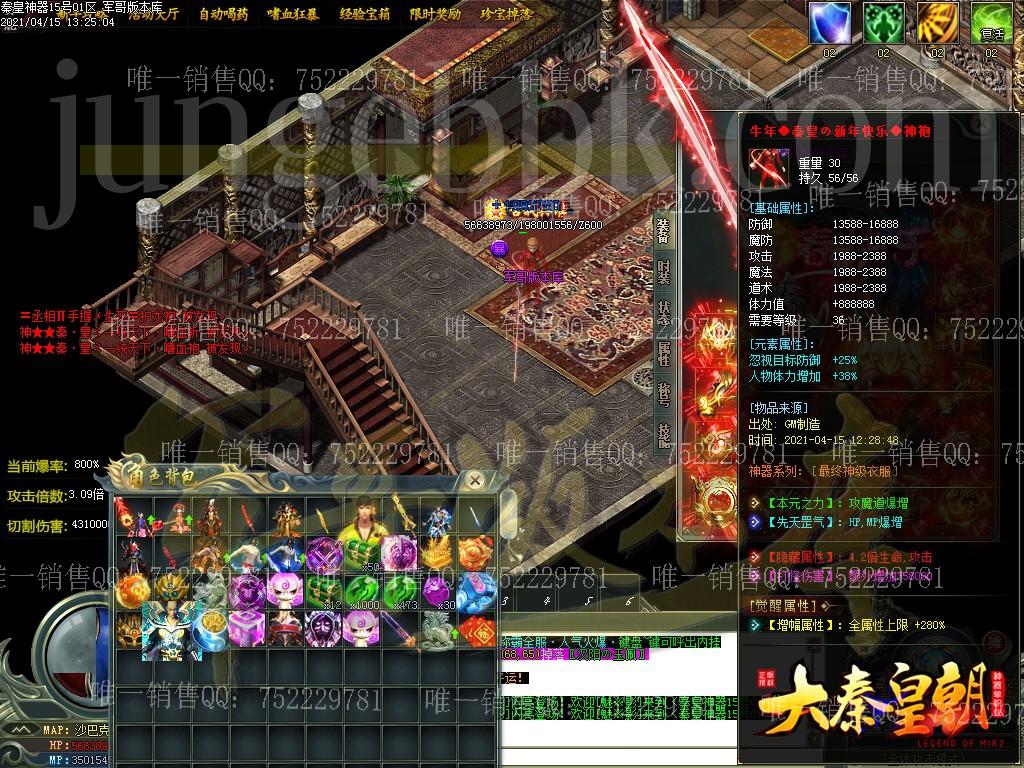 [爆率介绍] : 33阶(含33阶)装备永久回收大秦币 及特殊装备均可回收大秦币可!
