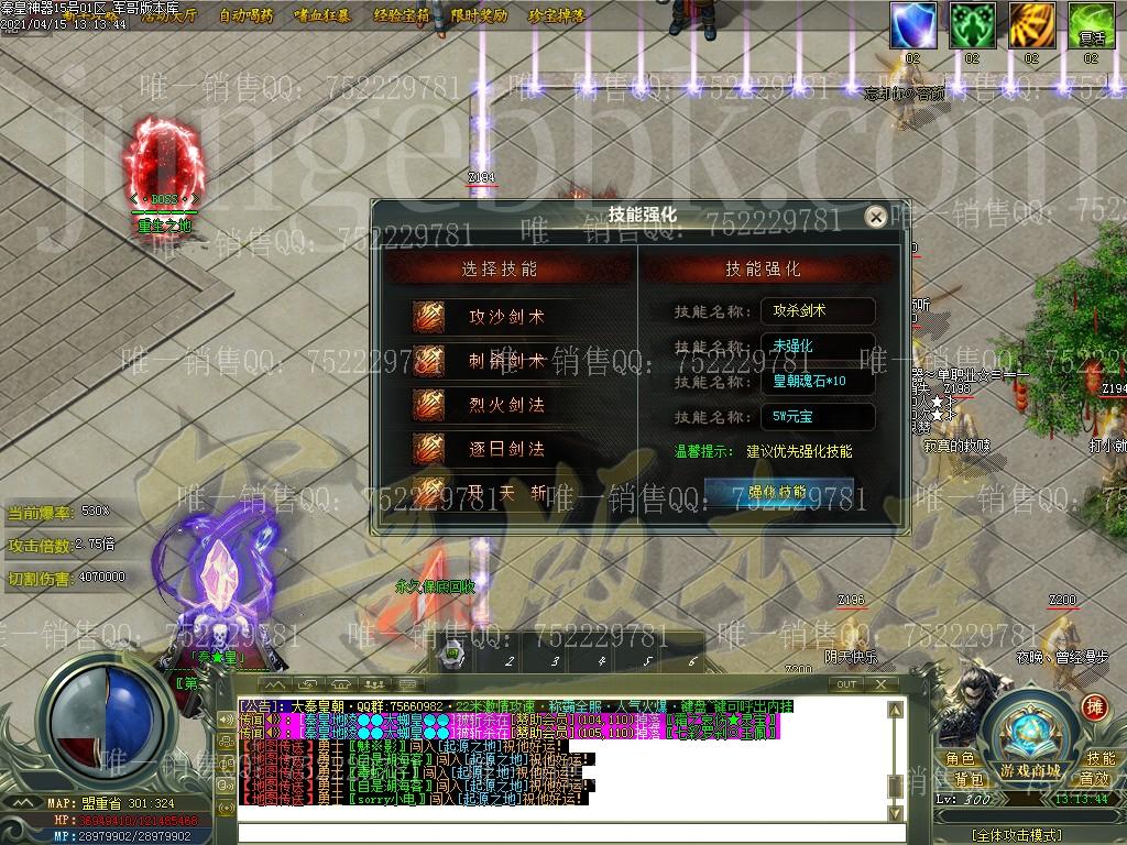 领取本服的福利以后,直接新手地图开干,前期打的元宝,点券,全部去升级切割,可快速提高打怪速度。