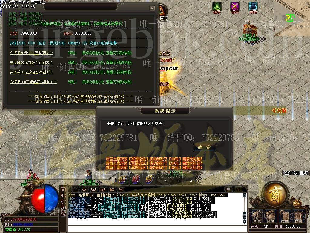 2: 中级档:领取30米礼包【100%打怪爆率加成+刀刀麻痹 等】 + 沙城捐献30【100%真实爆率加成+2000切割等等】!
