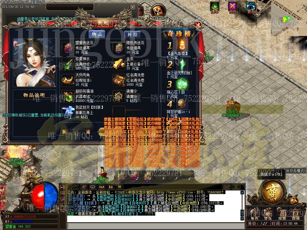 3: 高级档:狂暴20(属性强大)+ 沙城捐献30【100%真实爆率加成+2000切割等等】+ 礼包30【100%打怪爆率加成+刀刀麻痹 等