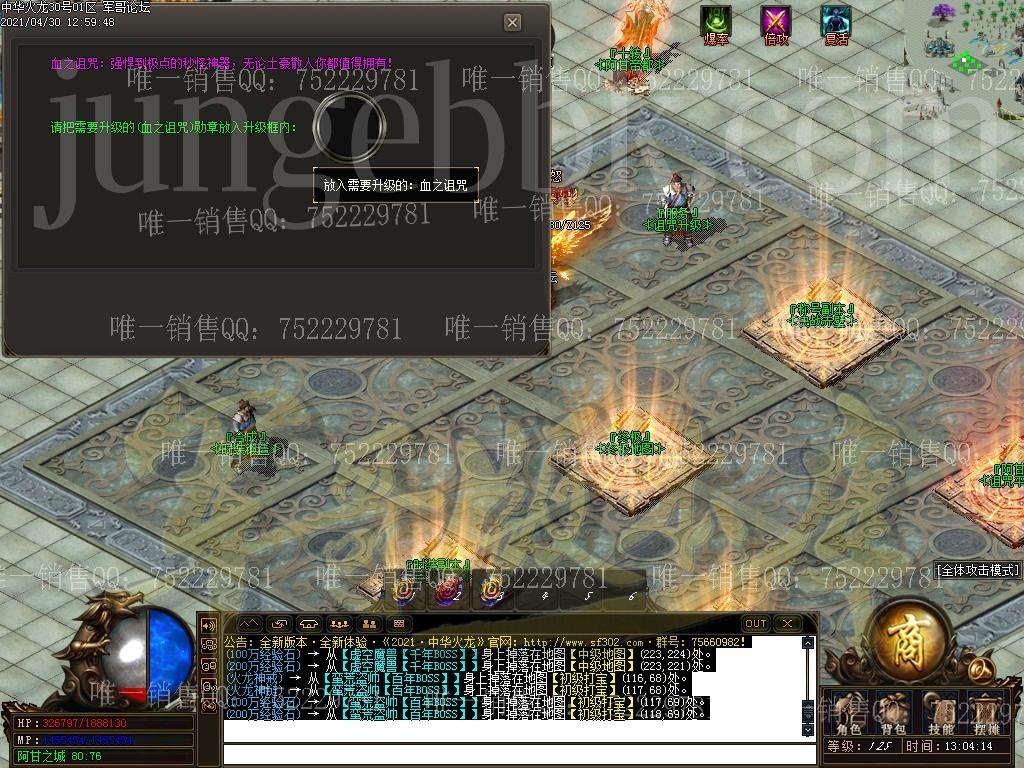 4: 顶级档:狂暴20(属性强大)+ 沙城捐献30【100%真实爆率加成+2000切割等等】+ 满礼包【300%打怪爆率加成+刀刀切割1W点