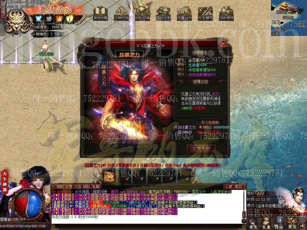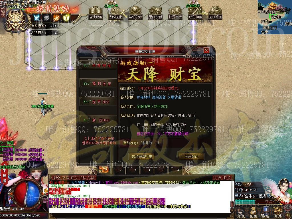 金币充值比例 1 :10   版本为正常开区端有问题联系QQ 616102345  处理