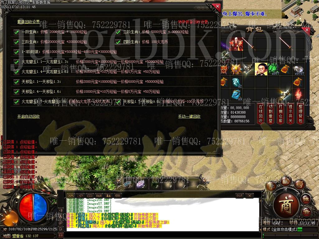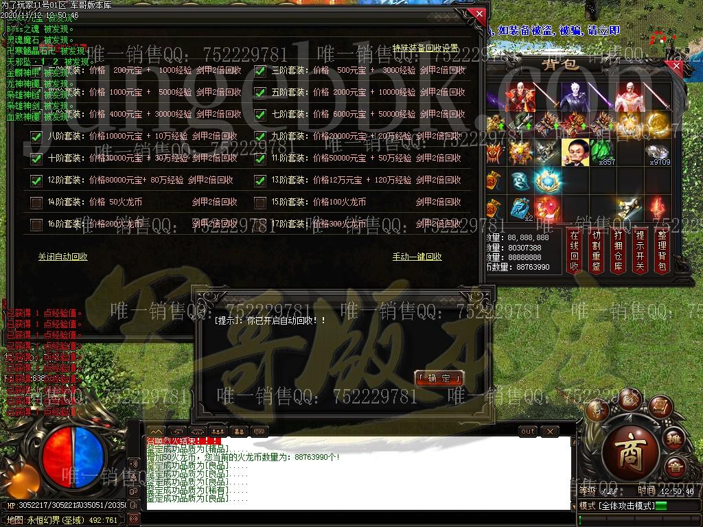 ⑨:注:本服全网最高爆率【最低消费】,十万年以上的怪就爆所有终极装备。