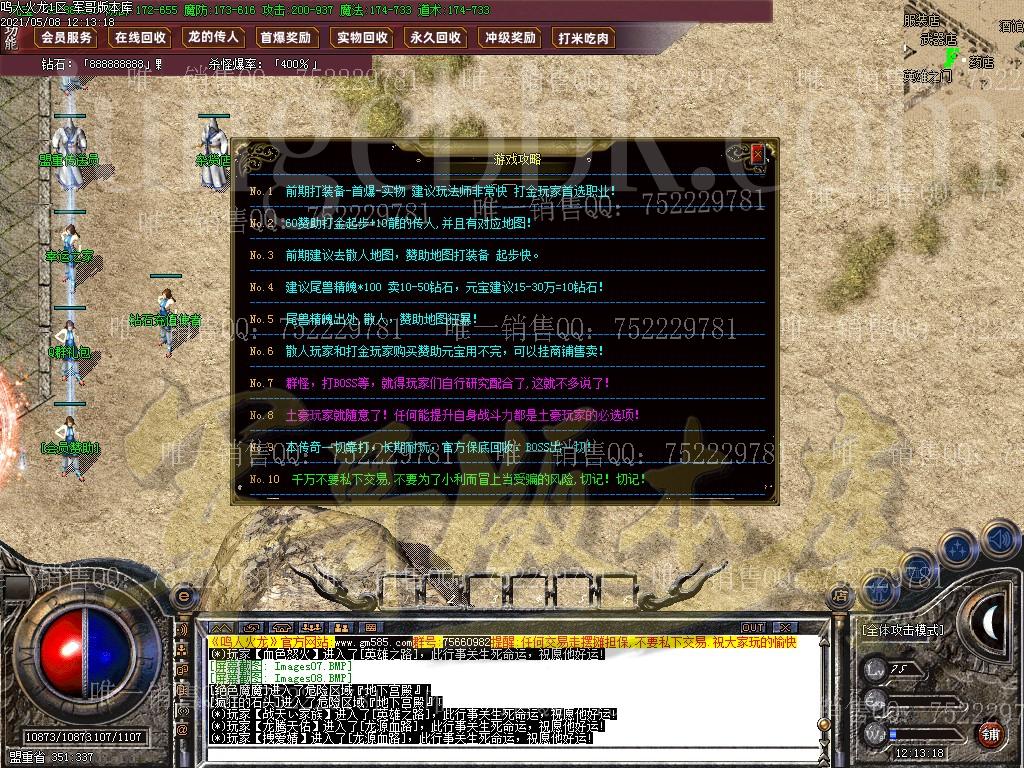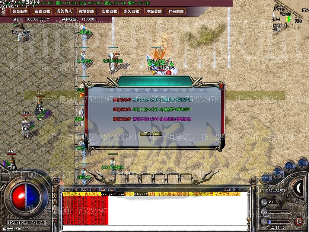 金币充值比例 1 :10   版本为正常开区端有问题联系QQ 616102345  处理