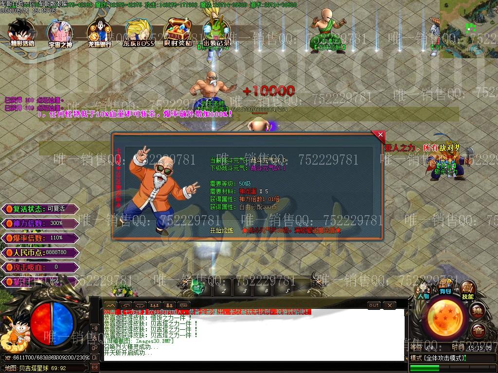 |元气修炼LV10:   需要万能胶囊   500个       神力1.10   自由分配点:200点   小退上线送:魔法盾3级 |