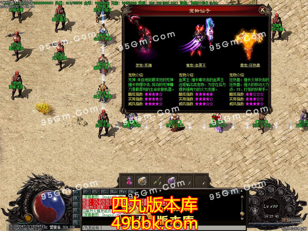 [游戏特色] >> 教主级BOSS爆率都非常高,怪物经验高,边打装备边升级,也可烧经验狼练级!