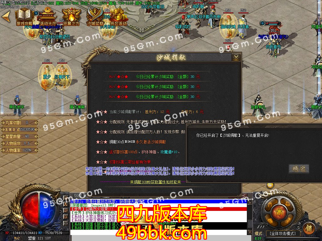 金币充值比例 1 :10   版本为正常开区端有问题联系QQ 616102345  处理