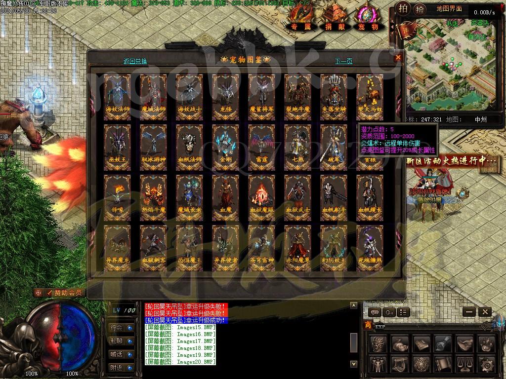 宠物介绍:宠物分为 物理 魔法2种合出一个好宠物起飞,宠物的好坏先看潜力,在看资质!