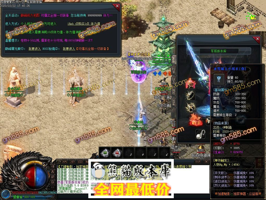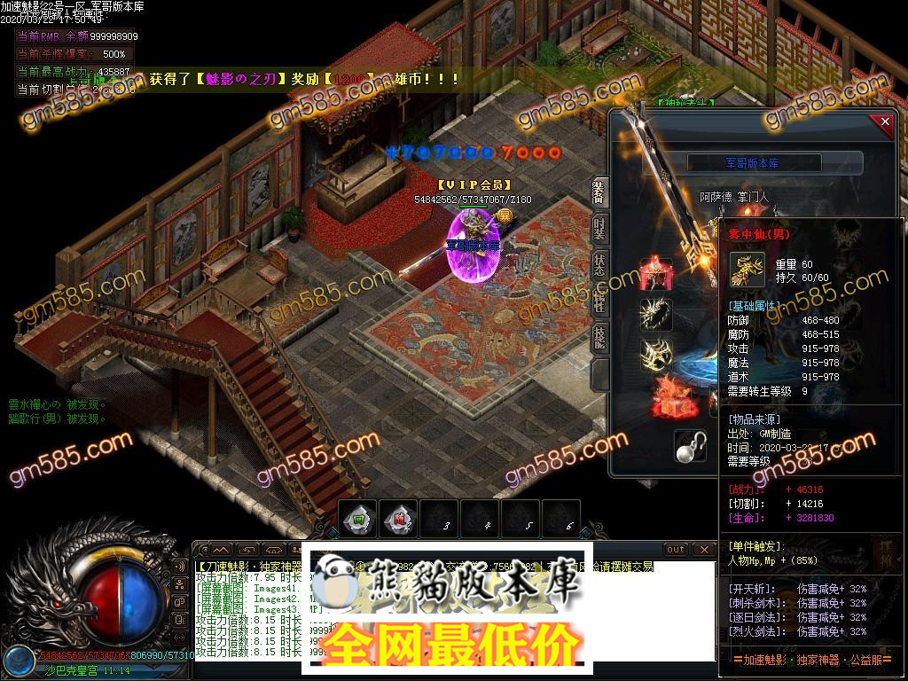 [GOM引擎] 16-655独家刀速魅影3攻速魅影单职业传奇版本-带假人-光柱-九重技能-沙城捐献_GOM引擎