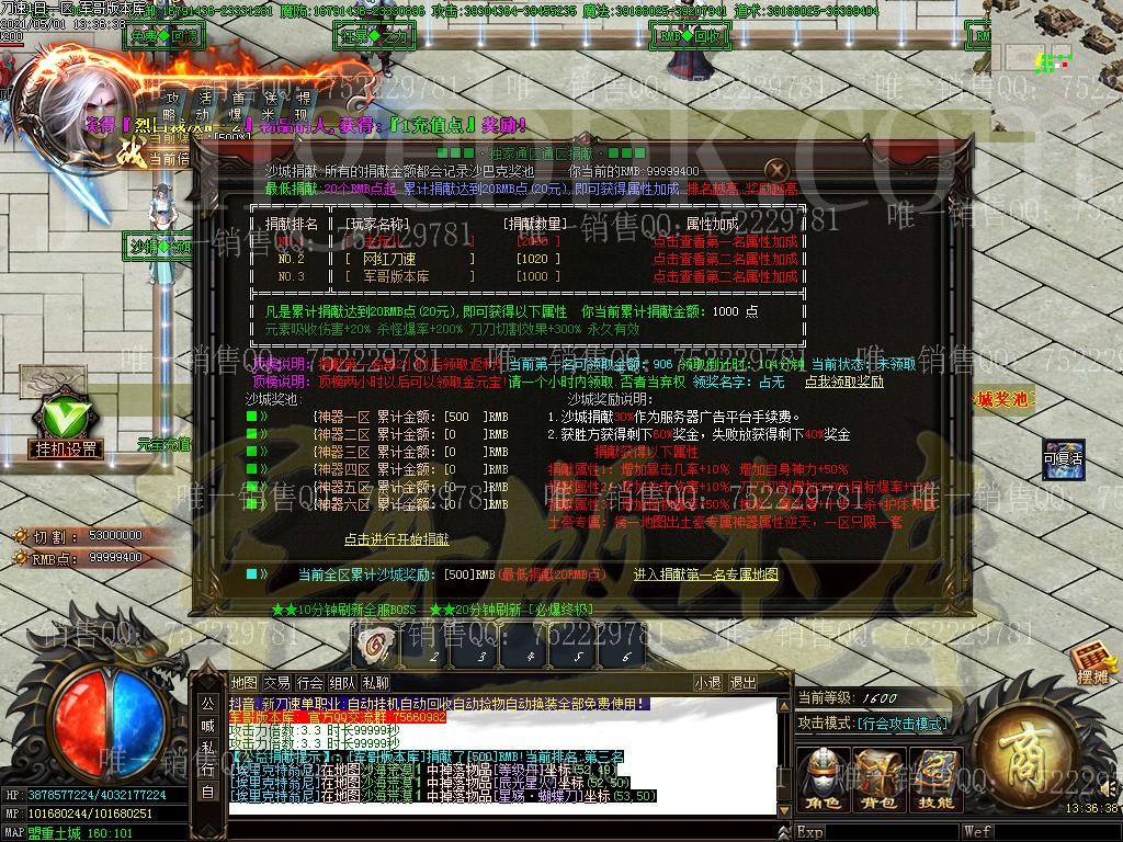 金币充值比例 1 :10   版本为正常开区端有问题联系QQ 616102345  处理