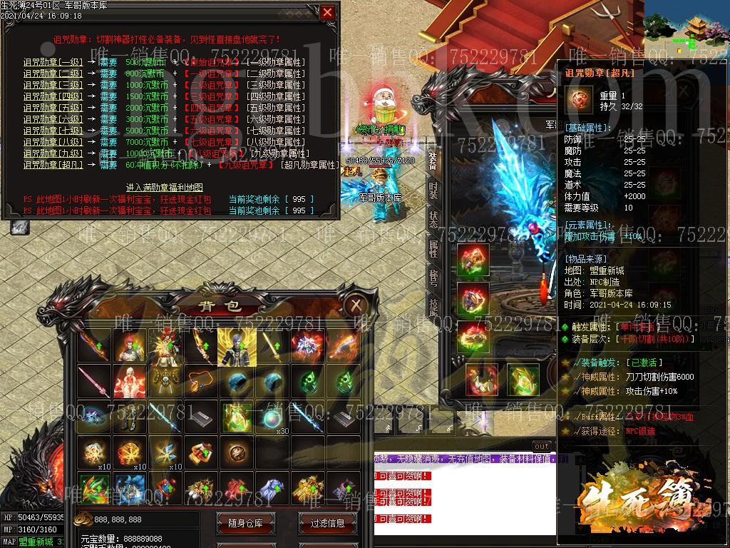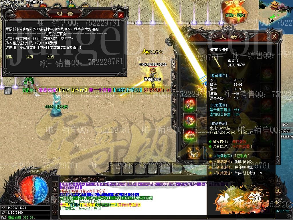 【重要提示】:本服装备就是,所有装备全靠爆,只要肯花时间,绝对玩的开心+赚钱多多!