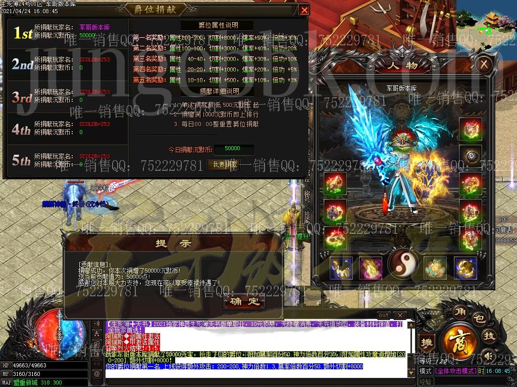【转生】:转生上线叠加攻击倍数,转生石头在各大地图怪物和BOSS爆出。转生倍数可以和其他的倍数叠加,所以威力就不用我多说了,
