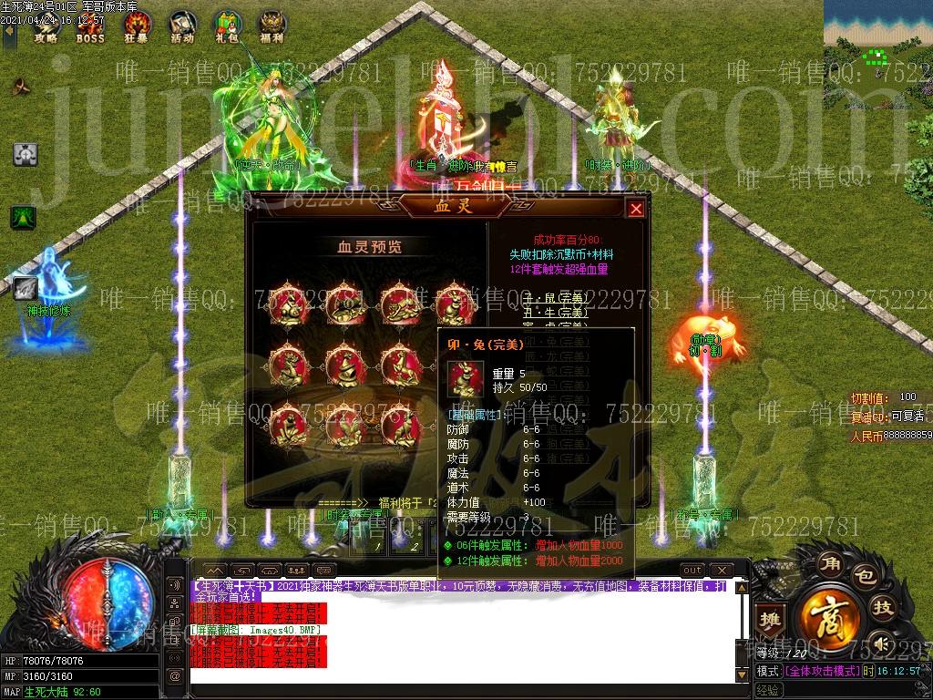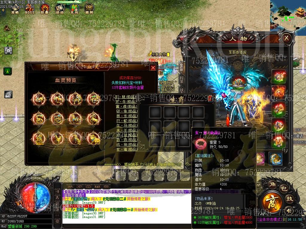 【血灵】:血灵可是个好玩意生肖一共分为1.2.3个等级,加血,加技能威力,集齐12套装威力惊人,
