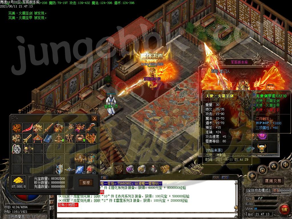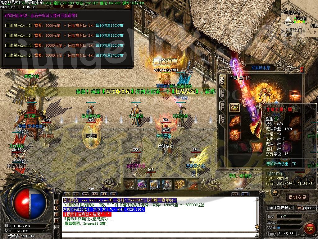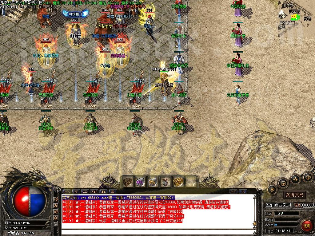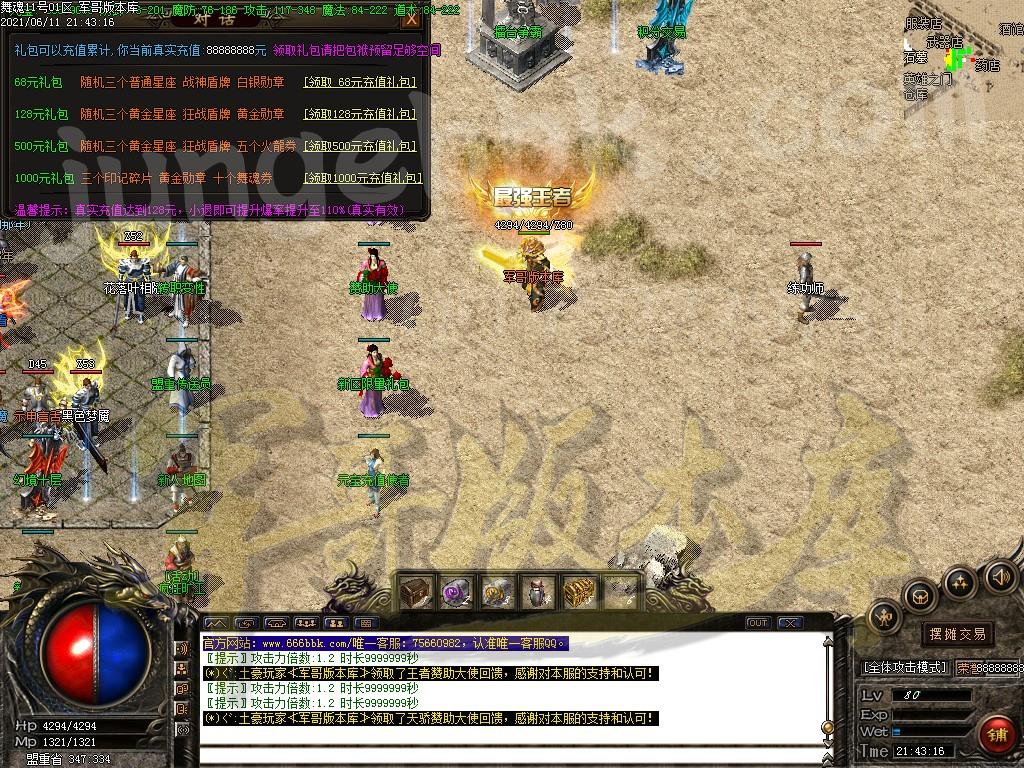 【游戏介绍】 2021舞魂火龙·四大神器·独家新版小极品·公平公正·长久耐玩·激情等你来战! - 【游戏介绍】元宝比例1:1000 点卡多送90% 网银多送100% 为了请在游戏内NPC点开冲值! - 【游戏介绍】魔龙教主爆各种高级剑甲,暗之魔龙教主爆终级剑甲-本服所有装备全部可以怪物爆出! - 【游戏介绍】新区第2天晚上集体攻沙,首次拿沙奖励300卷! ============================================================