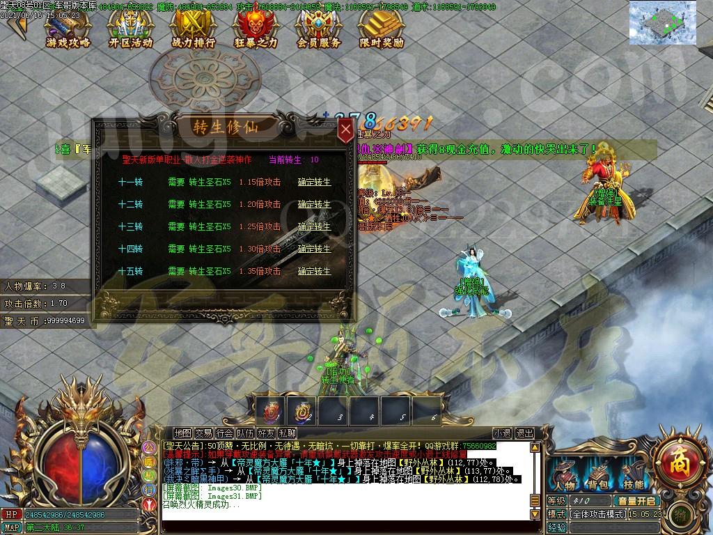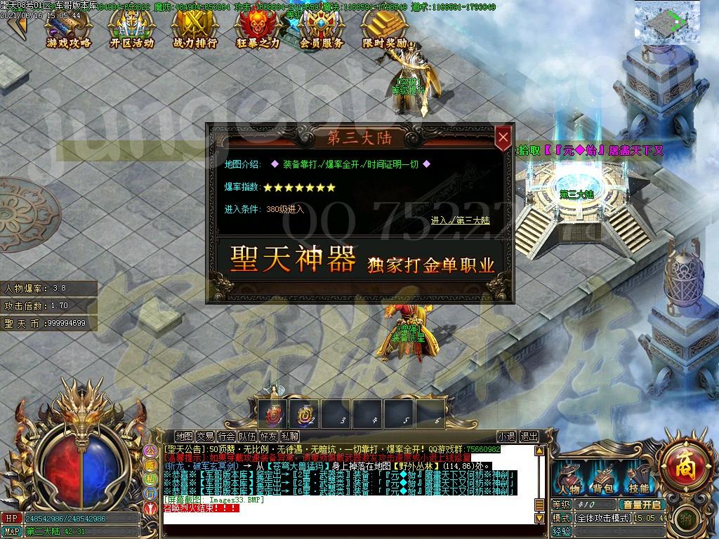 金币充值比例 1 :10   版本为正常开区端有问题联系QQ 616102345  处理
