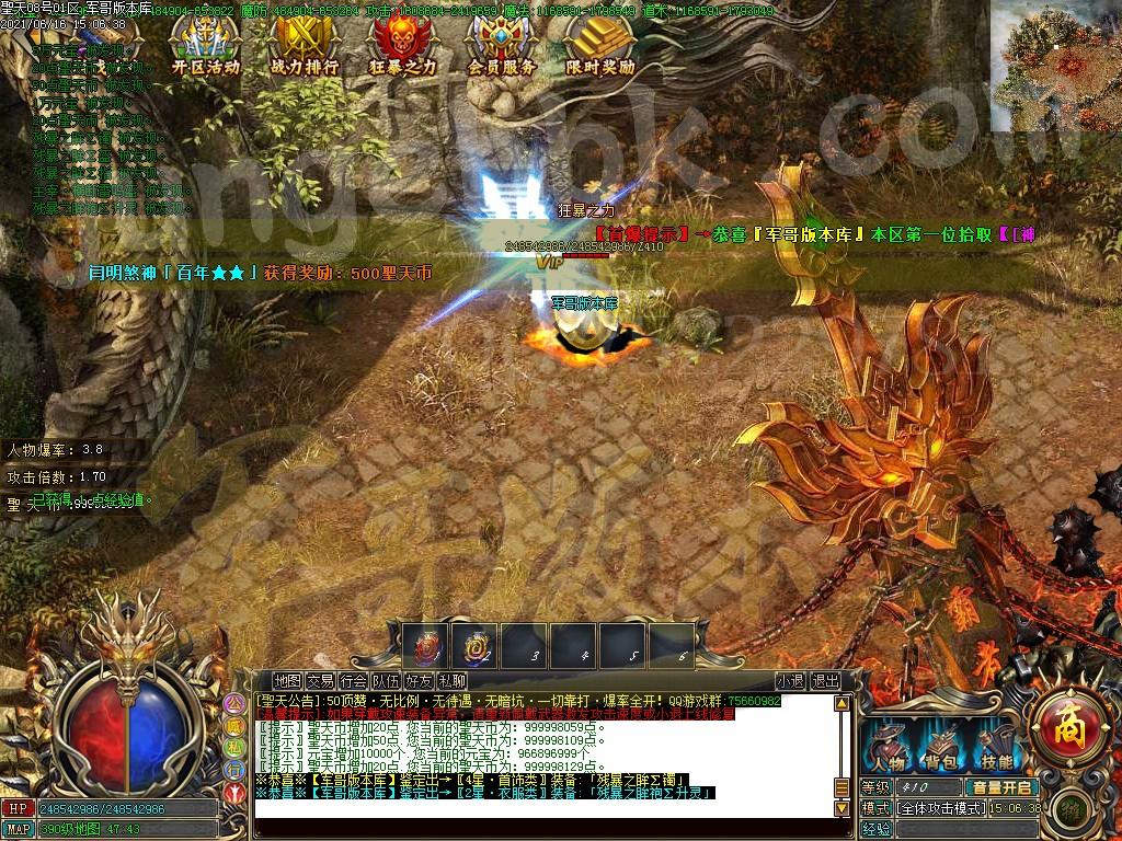 【游戏爆率】:|本服真实爆率,游戏内狂暴之力,称号.捐献都会加相对应的爆率,所有爆率全开.永不关闭爆率!