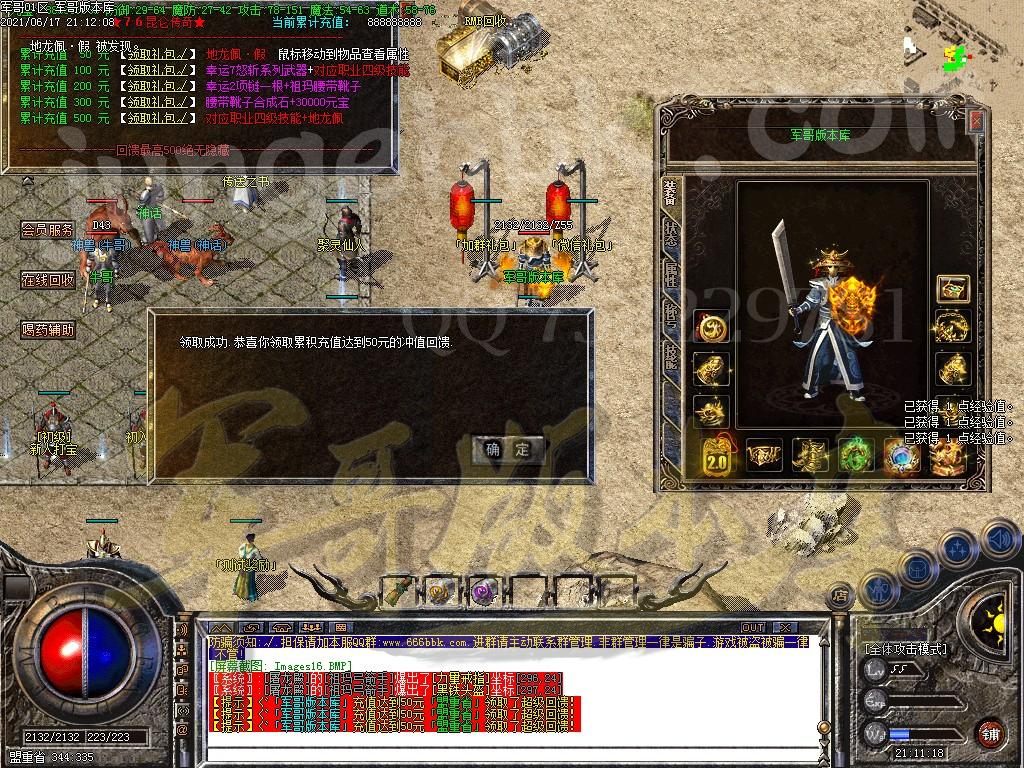 金币充值比例 1 :10   版本为正常开区端有问题联系QQ 616102345  处理