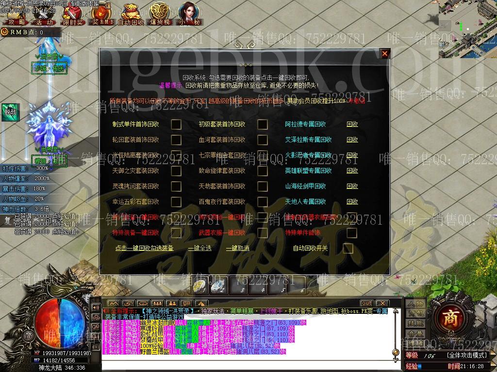 新手必看:本服上线自动捡物(无法捡物=小退上线,按键盘左上角数字“1”左边的“~”键,呼出传奇精灵)!