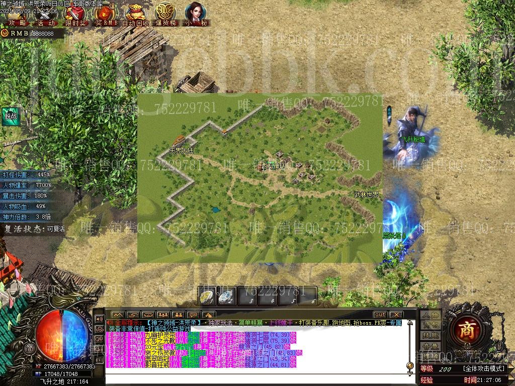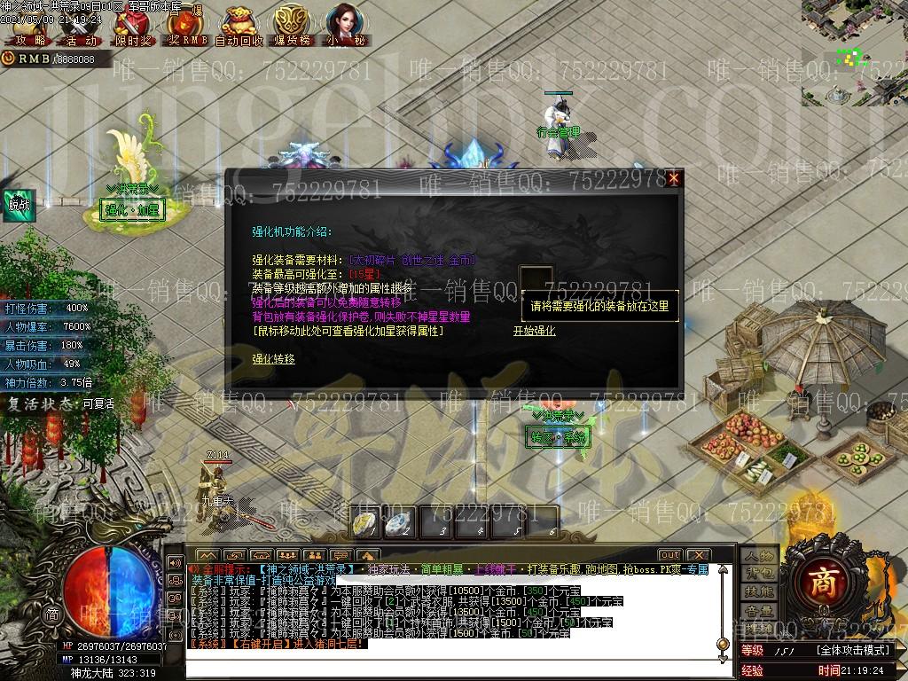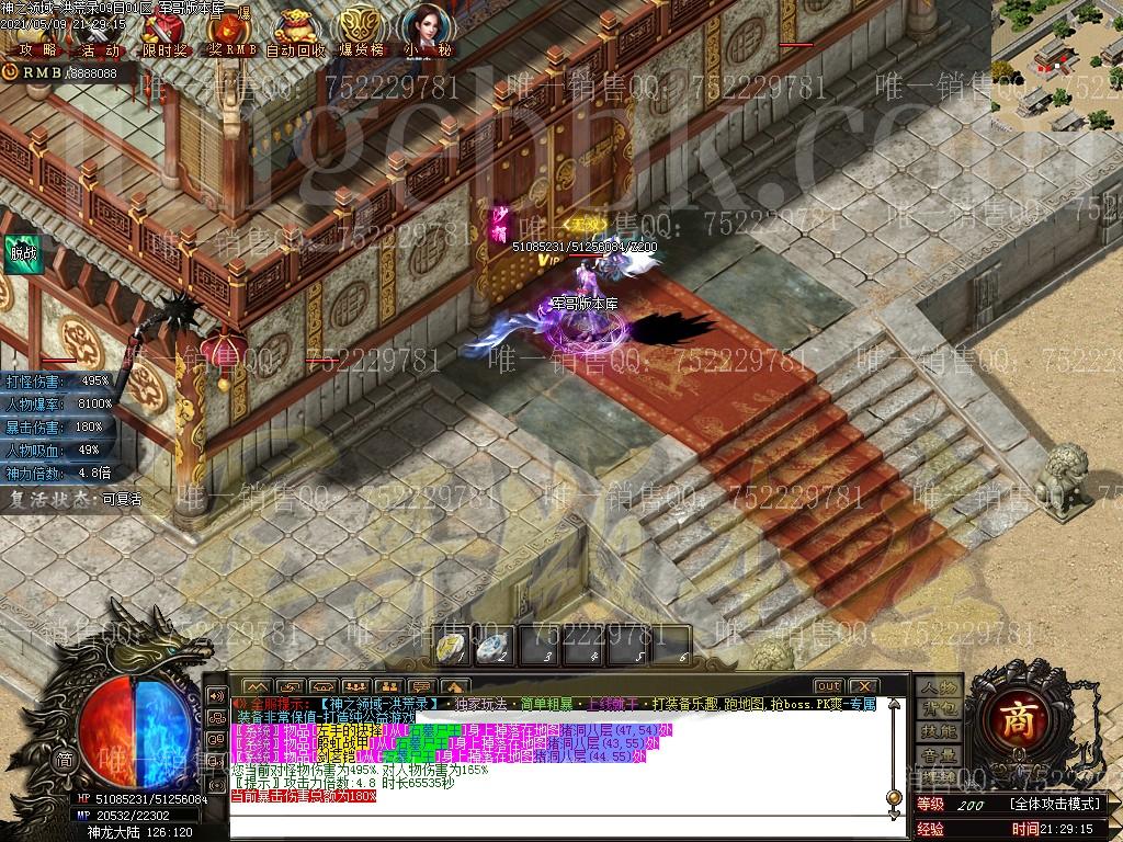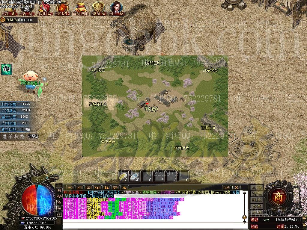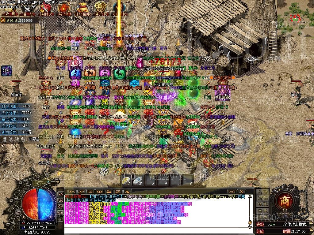 ★★充值玩家攻略★★: ★30元沙捐献★ (爆率提升3000%,打怪伤害50%,攻击提升10%,生命值+10%,半月技能,群毒。 送+9套)