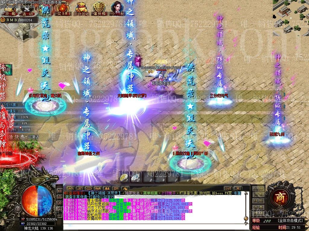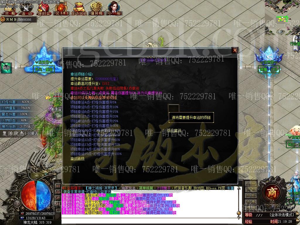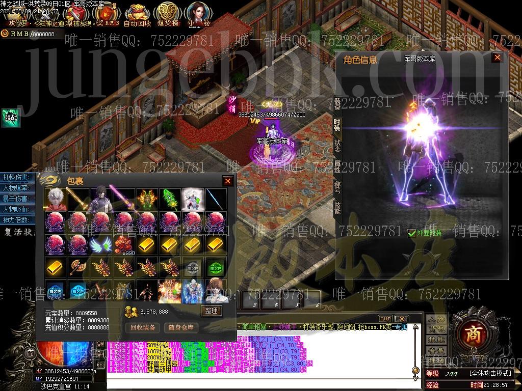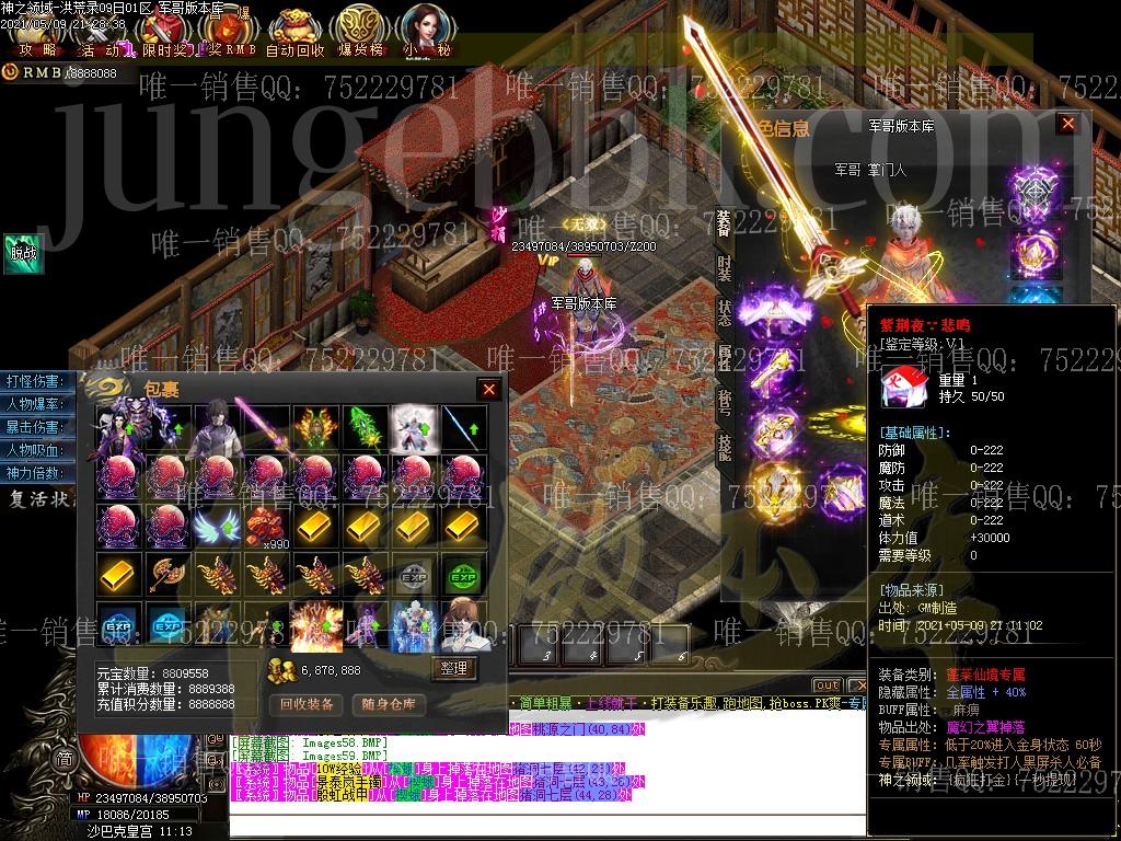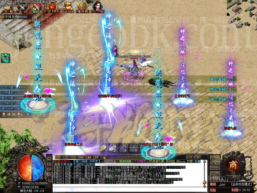★★充值玩家攻略★★: ★30元沙捐献★ (爆率提升3000%,打怪伤害50%,攻击提升10%,生命值+10%,半月技能,群毒。 送+9套)