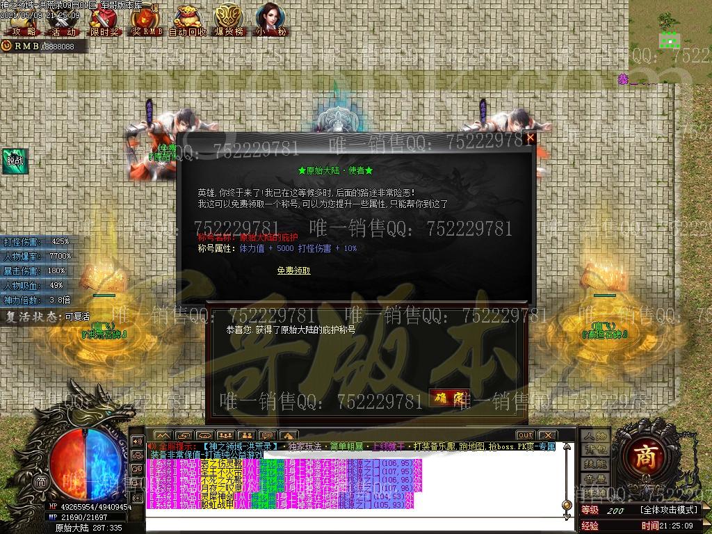 ┆ 老板档(328元) 20顶赞 +30捐献 + 10狂暴 + 68满称号 + 200终极时装(超高爆率) =328元(20元宝充值+308元充值)┆