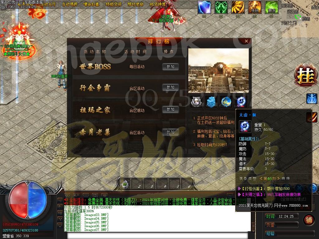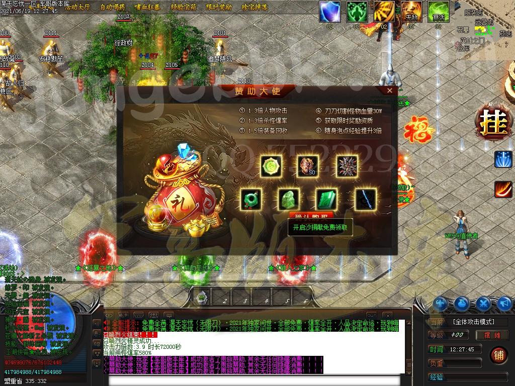 回馈玩家:上线领取赞助,直接强化技能,领取封号,下地图找BOSS打。