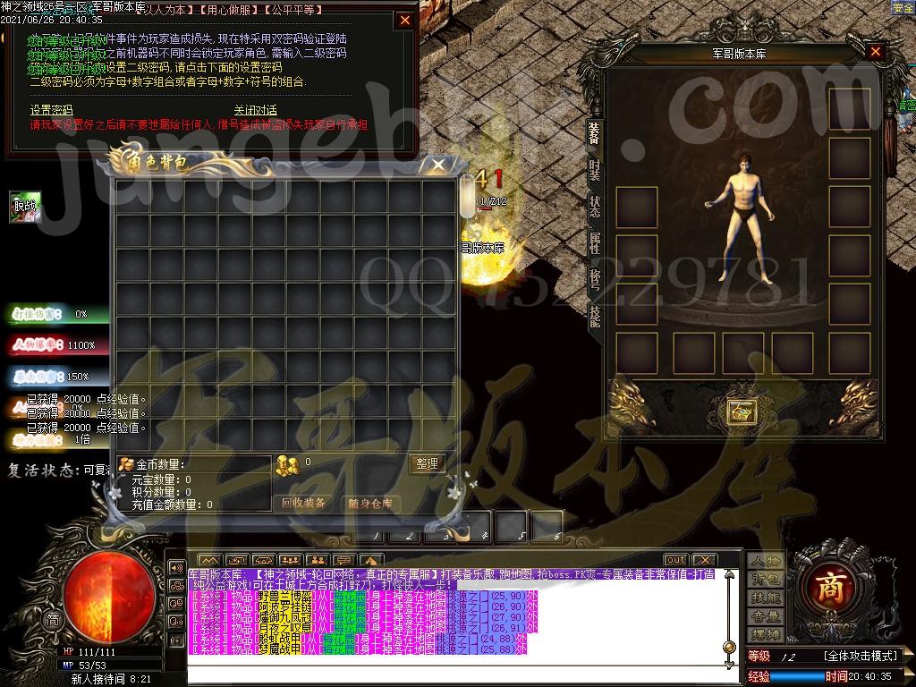 金币充值比例 1 :10   版本为正常开区端有问题联系QQ 616102345  处理