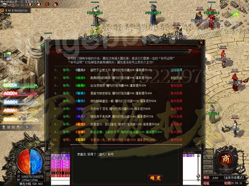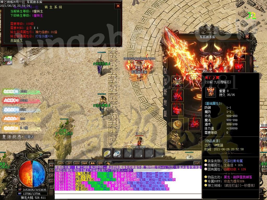 11.15日更新BUG【神之领域原始完美版】,【新增一套轮回装】修复无效BUG,