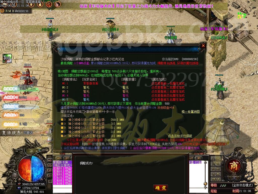 攻沙介绍:新区开区第2天全体拿沙 奖励沙巴克捐献80%的 由沙老大终自己领取发给小弟!