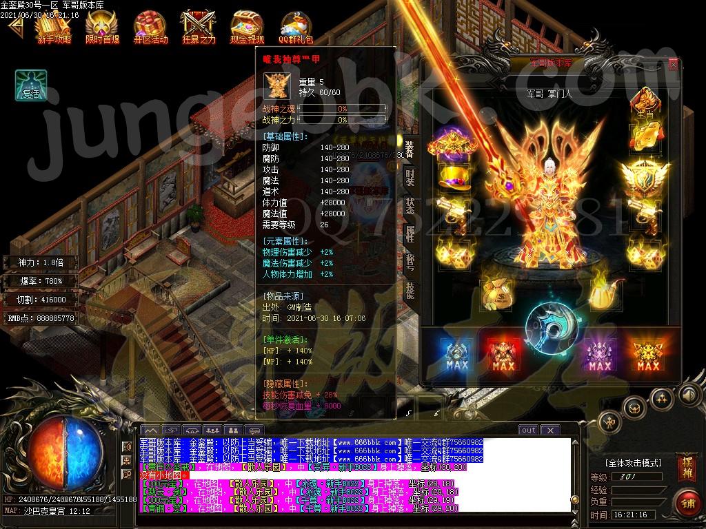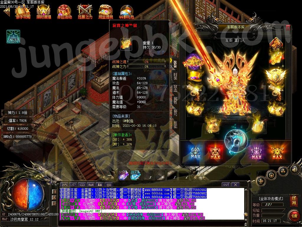 [GOM引擎] 18-651独家金銮殿神力切割冰冻单职业传奇版本-带假人-PG插件-光柱-爆率全开-永久回收