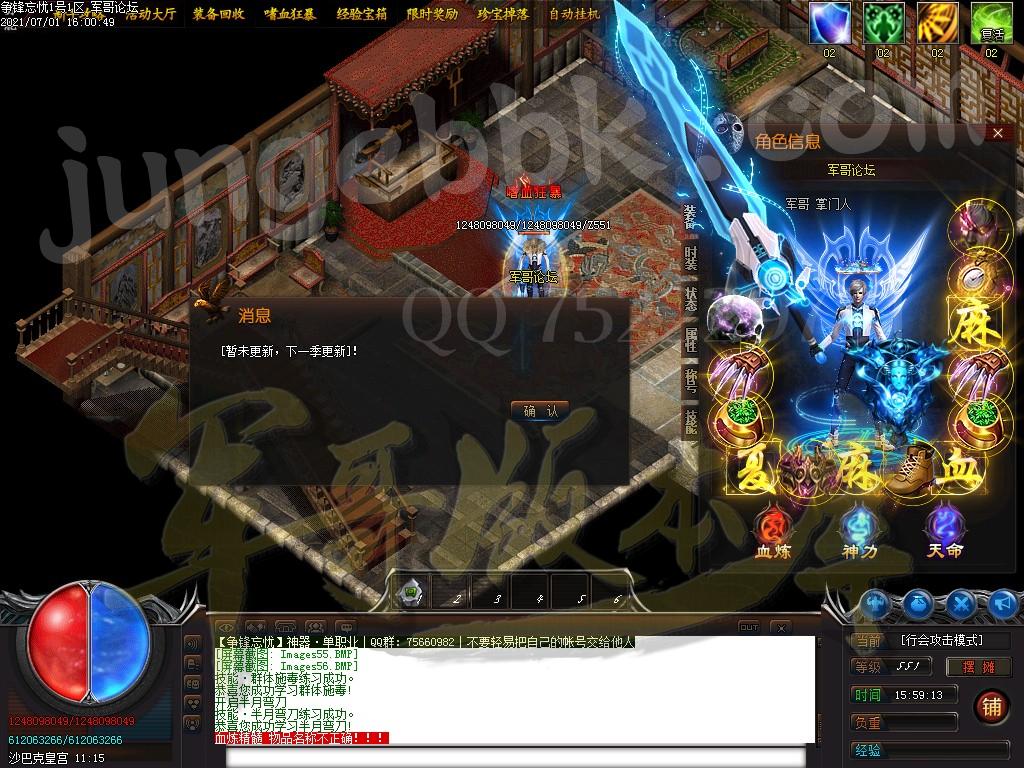 金币充值比例 1 :10   版本为正常开区端有问题联系QQ 616102345  处理