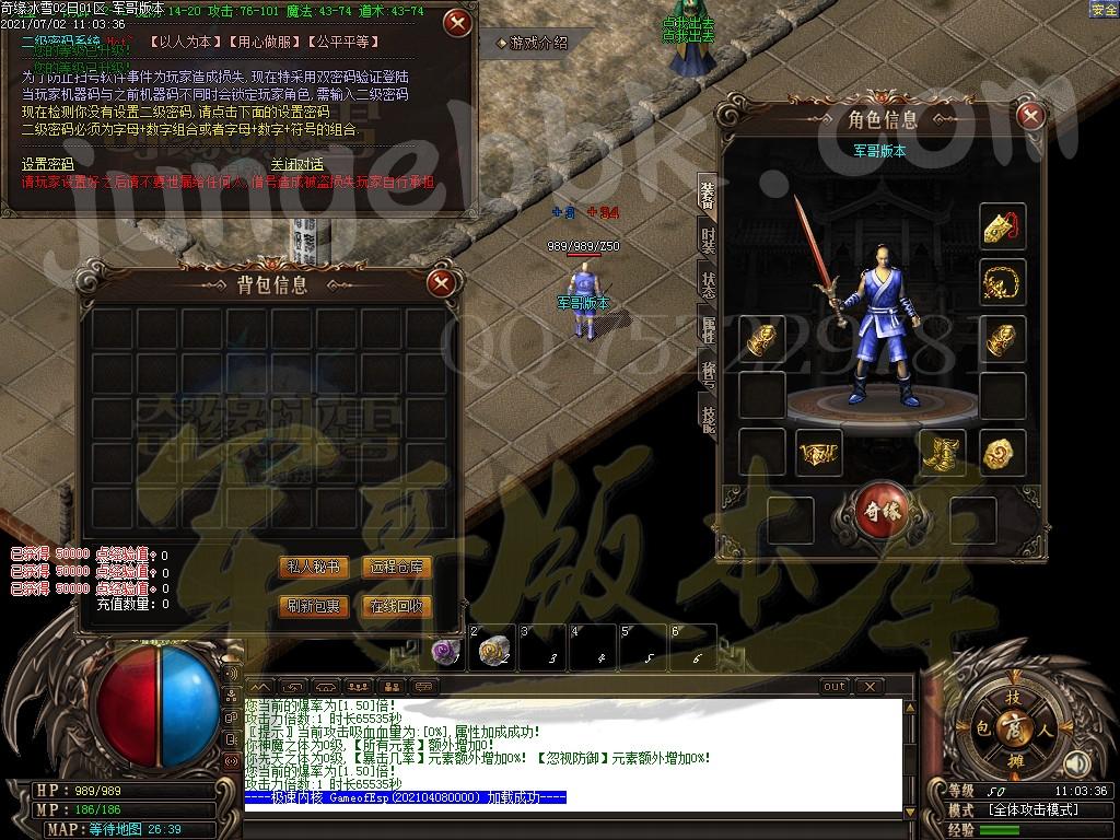 [GOM引擎] 18-663独家奇缘冰雪单职业传奇版本-PG插件-带假人-光柱-自动拾取-沙城捐献