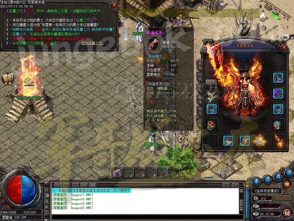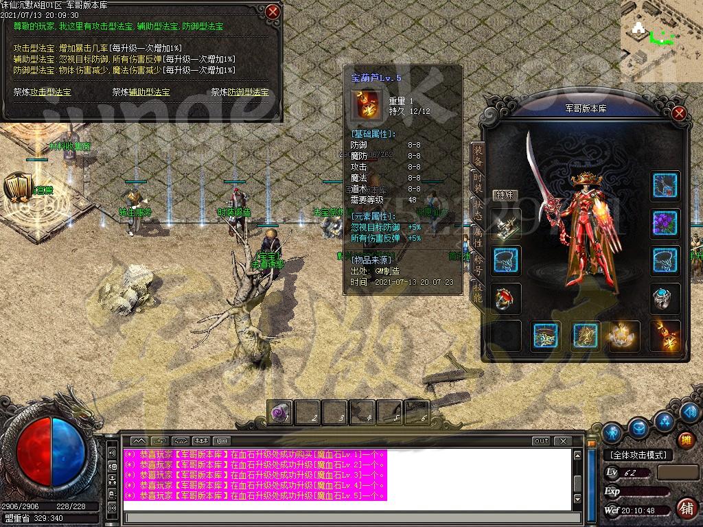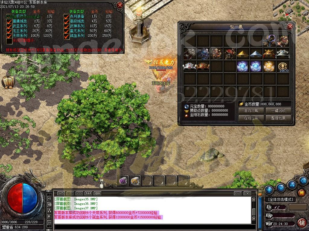 [游戏简介] F9内新增在线回收 ,超大随身仓库,全服文字过滤,尽量为玩家减少些不必要的麻烦。 玩家爽,GM就爽!