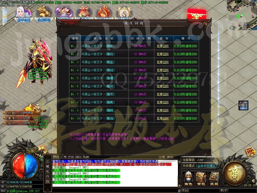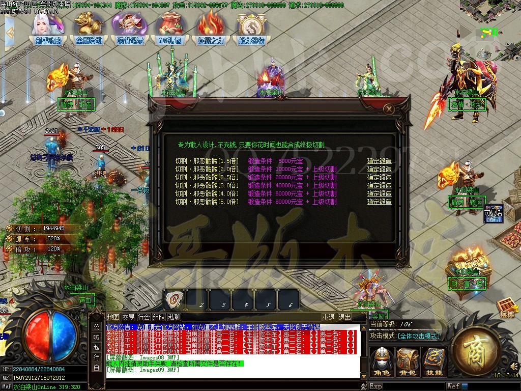 [GOM引擎] 18-771独家梁山好汉单职业传奇版本-带假人-PG插件-光柱-刀刀切割-沙城奖励-Y