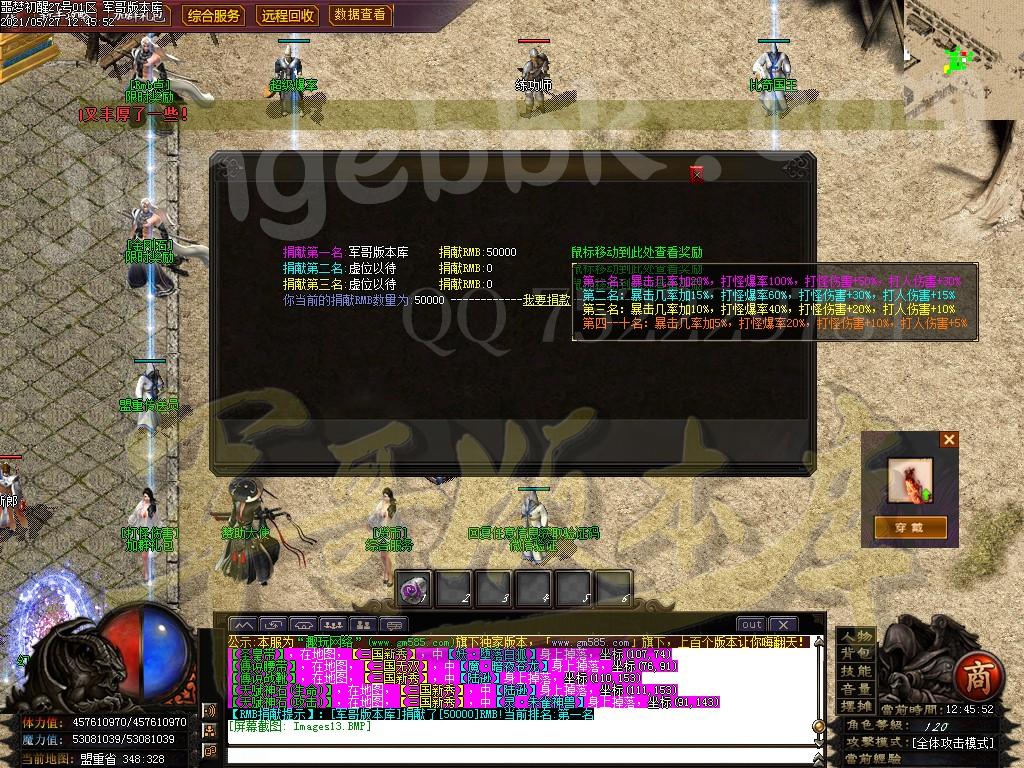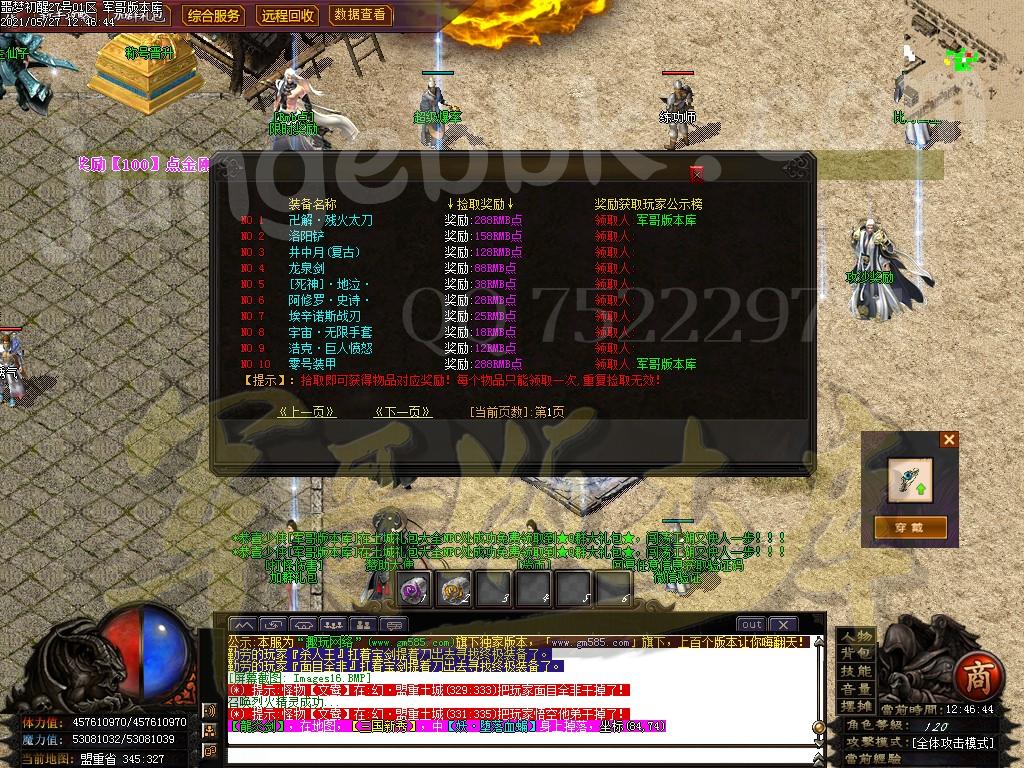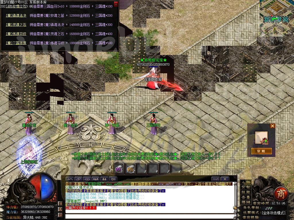 金币充值比例 1 :10   版本为正常开区端有问题联系QQ 616102345  处理