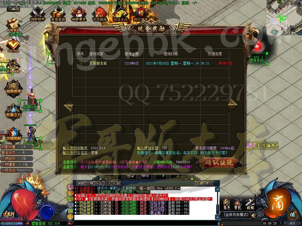金币充值比例 1 :10 版本为正常开区端有问题联系QQ 616102345 处理