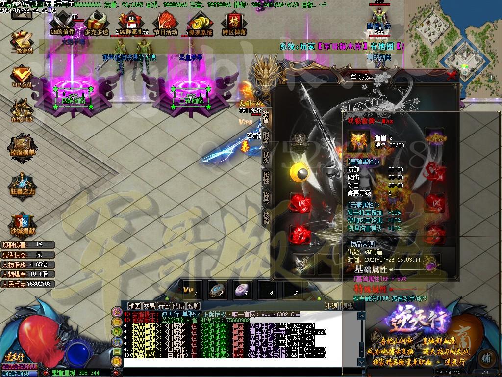 【游戏介绍】:装备大放送活动 每日攻城结束后 22:15分刷新