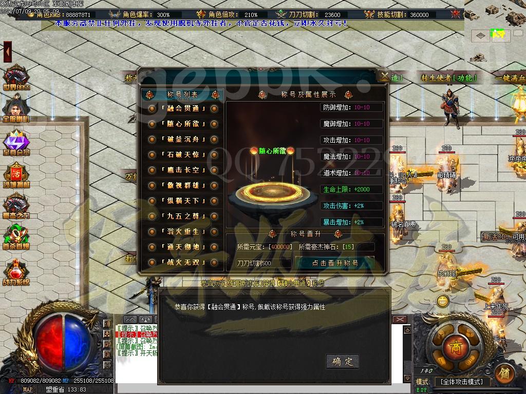 称号路线:沙捐【30米】 狂暴【2米】 榜6属性【10米】豪杰神力【10米】切割勋章【390个豪杰神石】120级【800个豪杰神石】称号十一级【740个豪杰神石+60万元宝+4万6火龙币】土城上方抽取梦神石1950个 大概需要:312米