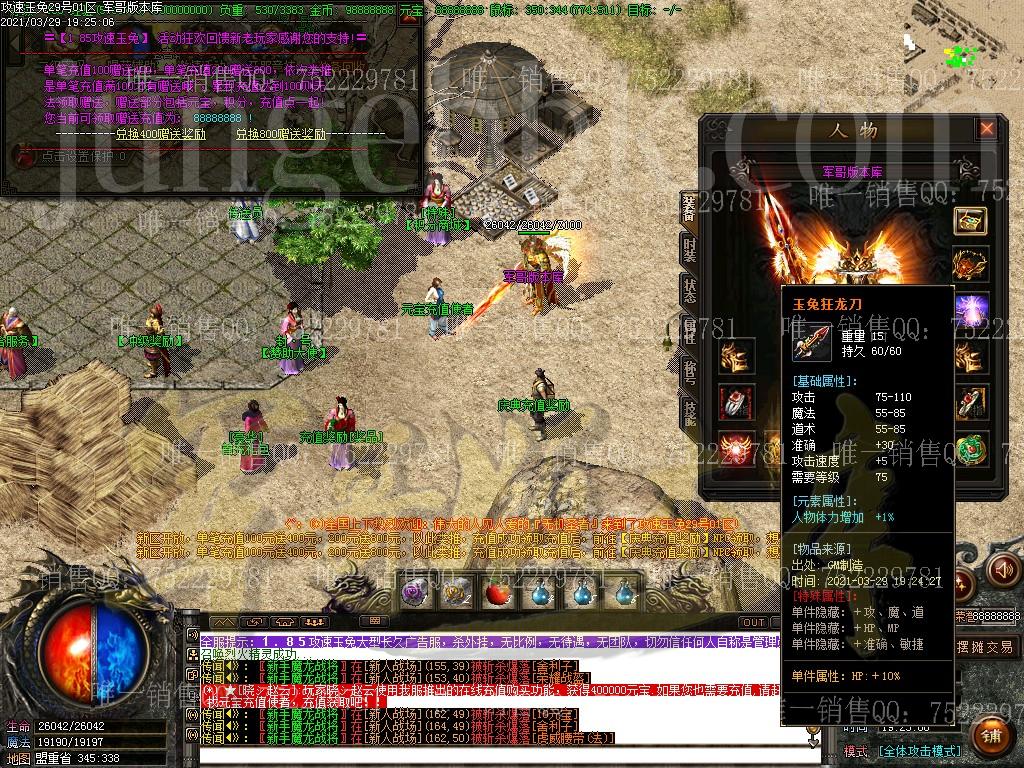 08月独家1.85攻速玉兔完美三职业传奇版本