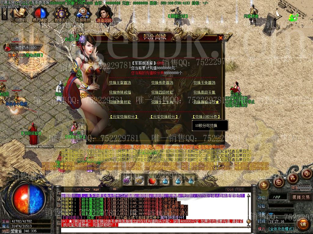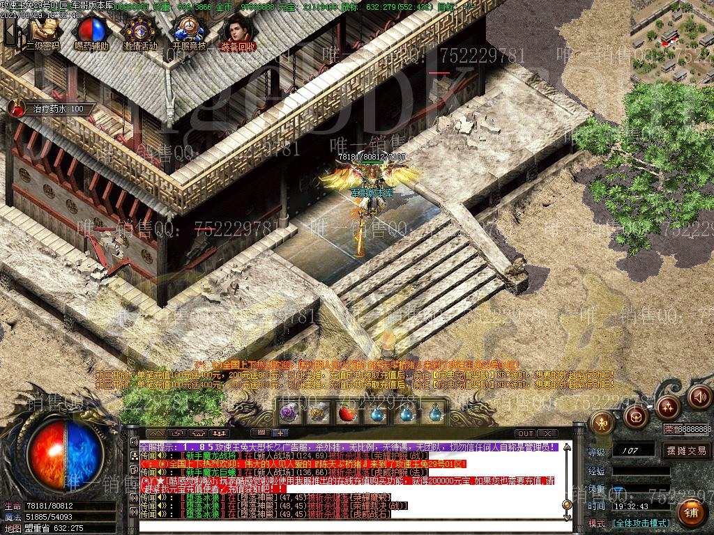金币充值比例 1 :10   版本为正常开区端有问题联系QQ 616102345  处理