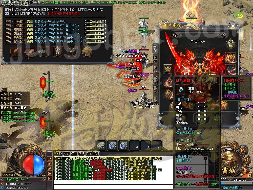 天耀第四季 修复已知BUG,提高前期,中期怪物爆率。 更新内容: 1.增加狐狸洞系列地图,入口在洛神岛。 2.增加海盗船系列地图,入口在洛神岛。 3.增加第九大陆(临荒大陆),入口在狐狸祭坛。 4.增加2套BUFF装备,一套12生肖,1套特殊4格装备。 5.增加人物24转,25转。2个剧情BOSS。 6.增加斗转星移终极进化。配合特殊装备触发终极攻速。 7.增加时装(亚索),为终极时装,超强属性,超炫外观。 8.具体地图走法详见攻略。 ============================================================