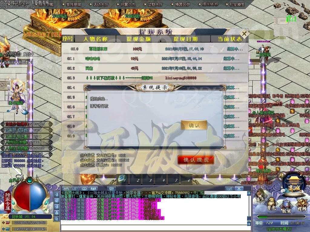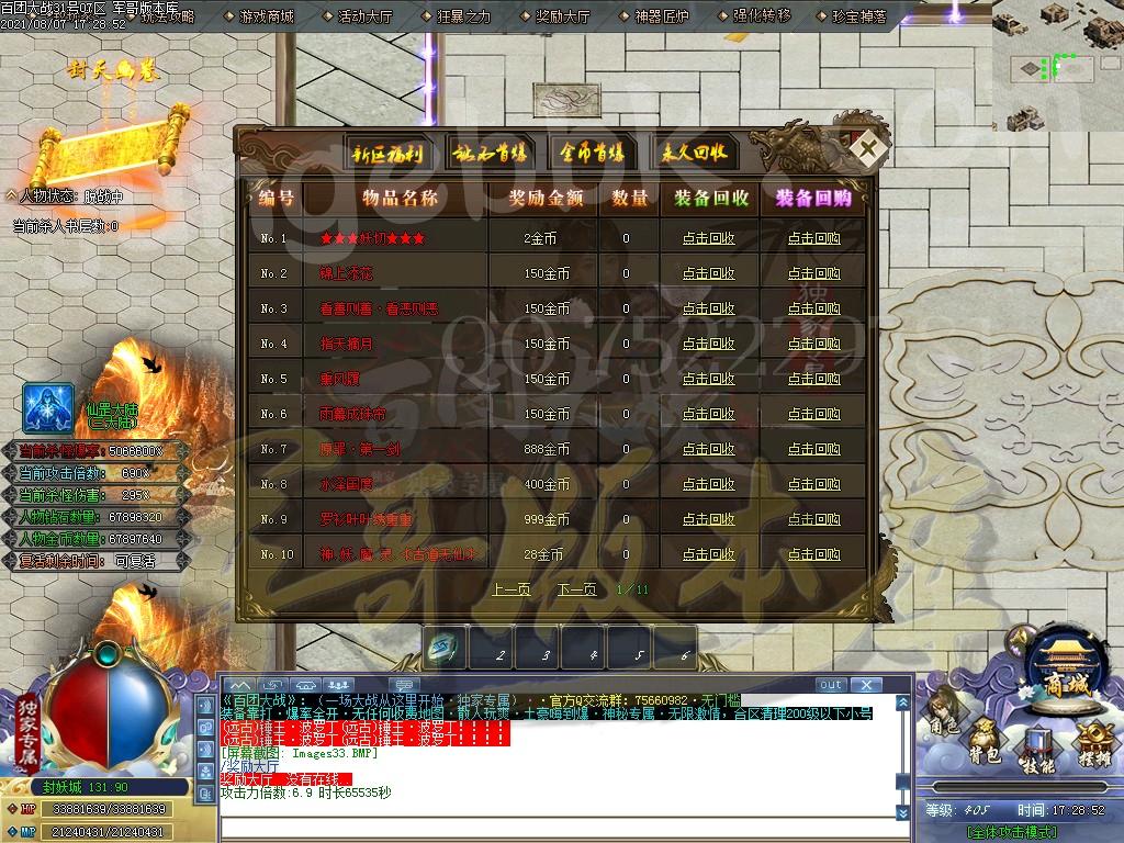 金币充值比例 1 :10   版本为正常开区端有问题联系QQ 616102345  处理