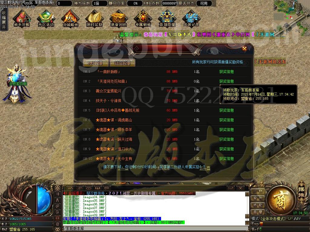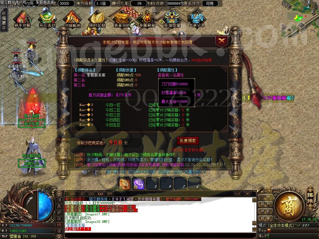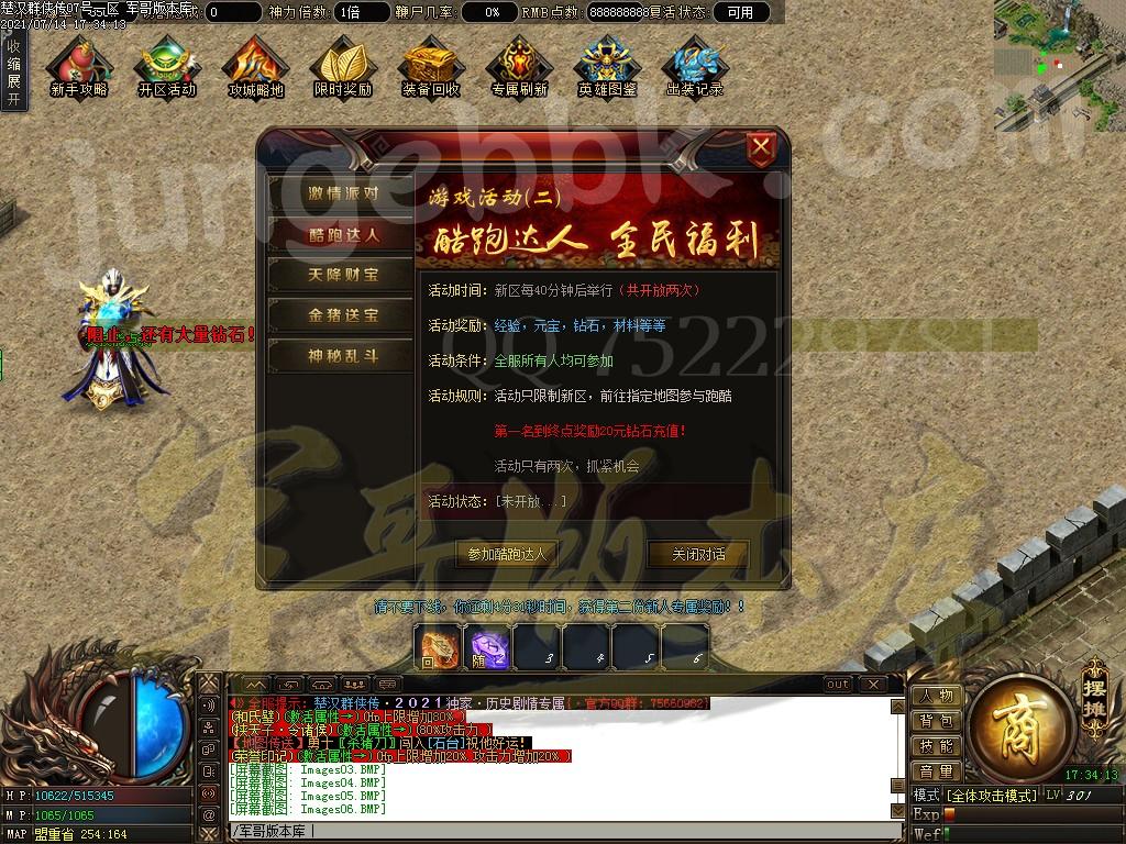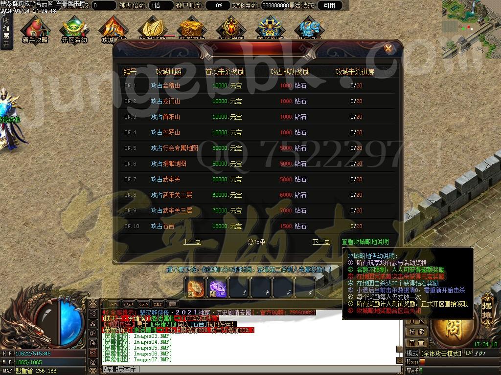 金币充值比例 1 :10   版本为正常开区端有问题联系QQ 616102345  处理