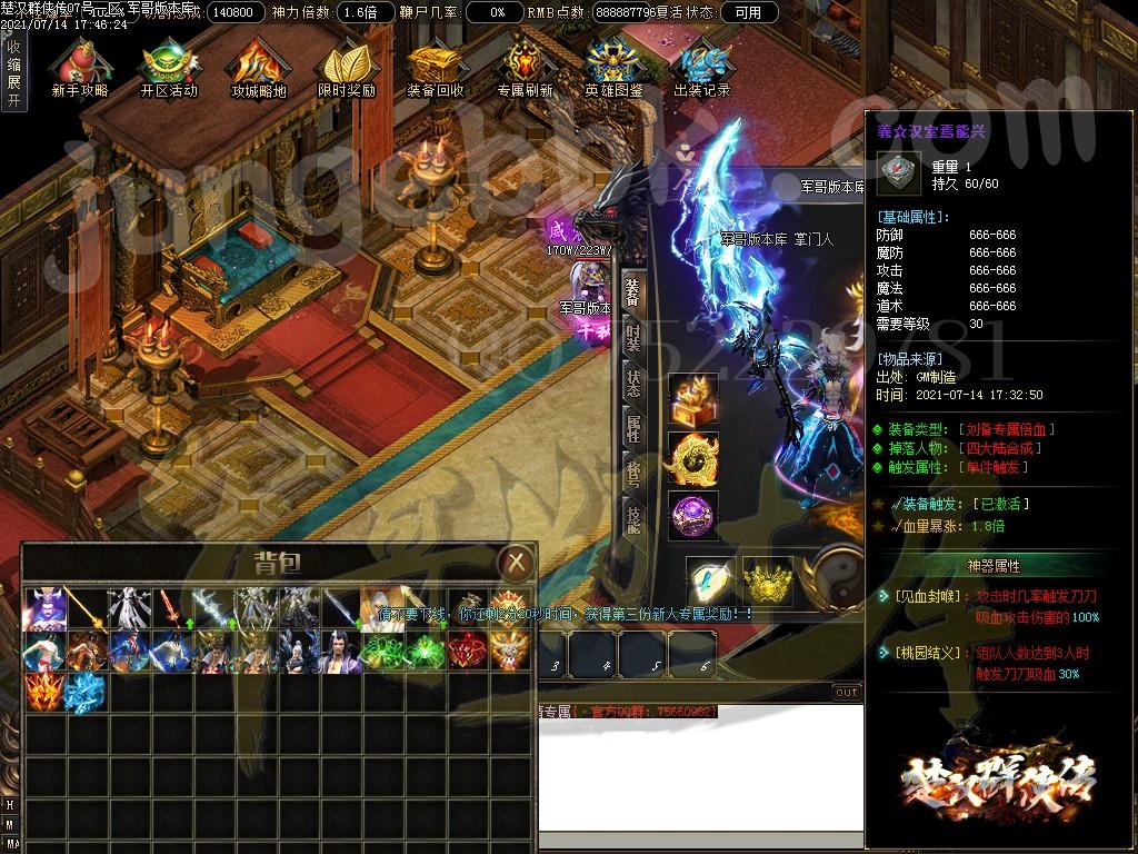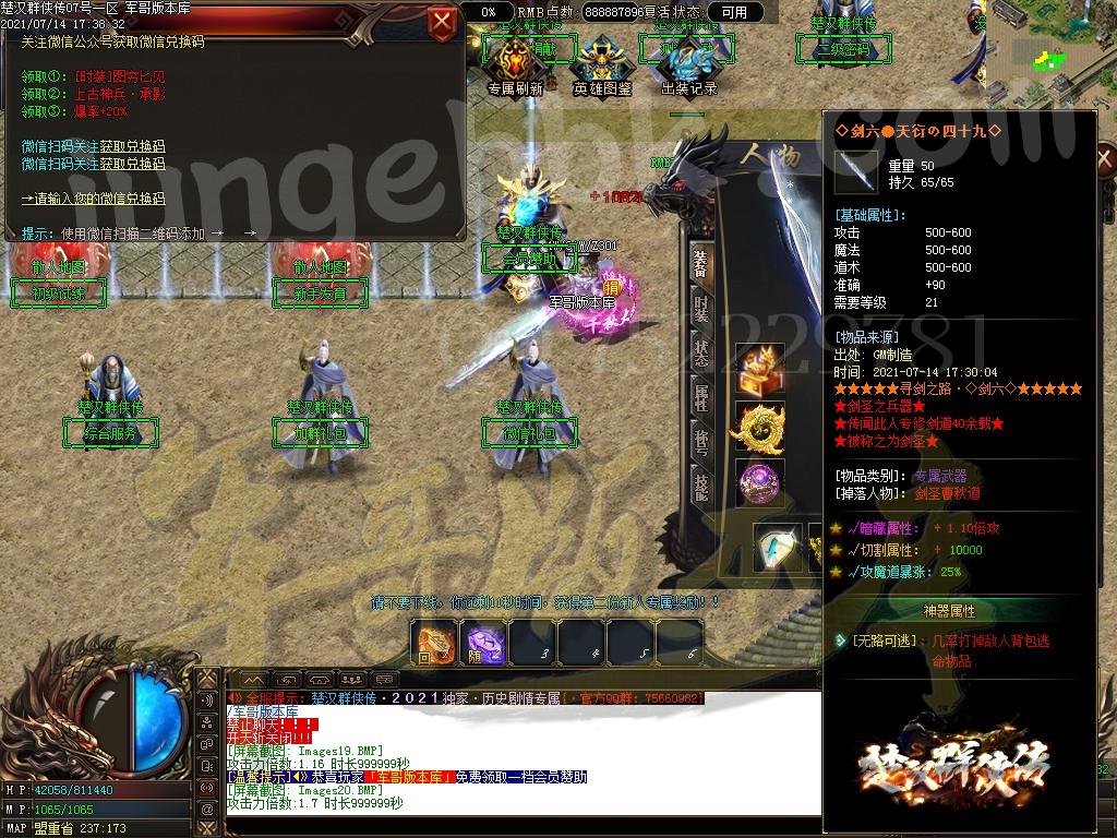 [GOM引擎] 18-717独家楚汉群侠传专属神器公益单职业服务端-带假人-PG插件-光柱-自动回收-沙城捐献
