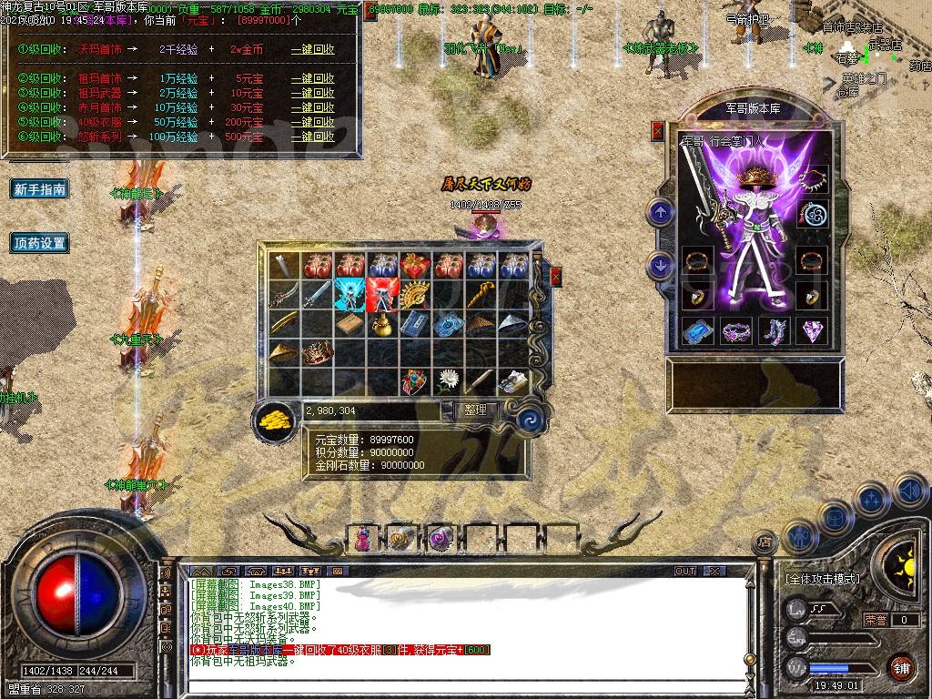 游戏特色是什么? I终极赤月,可爆出橙、紫、红三色,套装倍攻+3% 5% 10%